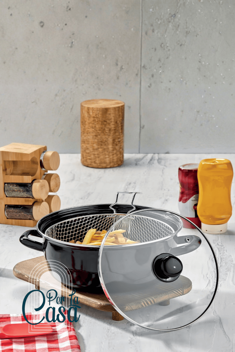 Black Emaye 24 cm Kızartma Tenceresi, 900 derece emaye kaplama teknolojisi ile üretilmiş, sağlıklı ve uzun ömürlü bir mutfak ürünüdür. Yüksek sıcaklıkta emaye kaplandığı için yüzeyinde bakteri barındırmaz ve parlaklığını uzun yıllar korur.
