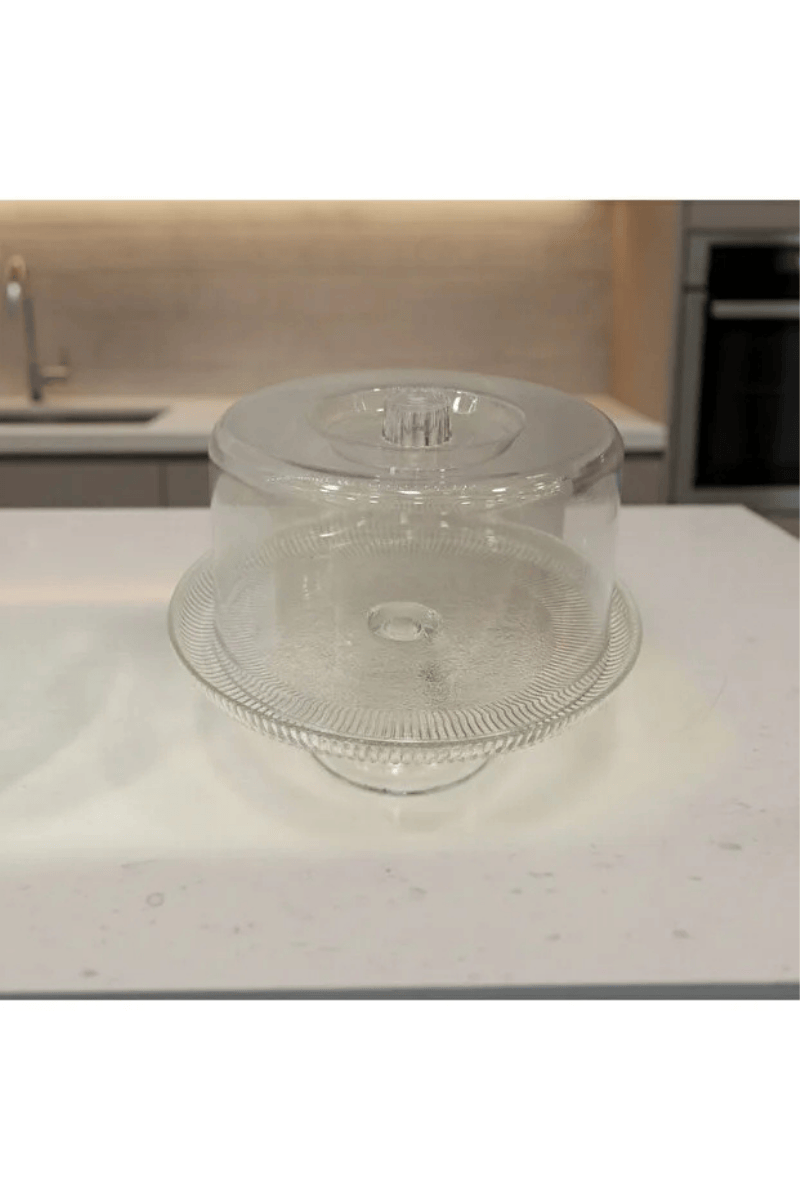 Cam Ayaklı Kapaklı Kek Fanusu, şık tasarımı ve zarif cam yapısıyla kek ve tatlı sunumlarınıza estetik bir dokunuş katar. 19 cm ölçüsü sayesinde küçük ve orta boy sunumlar için ideal bir kullanım sunar.Ayaklı formu ile sofralarda yükseltilmiş ve dikkat çekici bir görünüm sağlayan Cam Ayaklı Kapaklı Kek Fanusu, kapaklı yapısı sayesinde ürünlerinizi taze tutar. Cam Ayaklı Kapaklı Kek Fanusu, hem günlük kullanımda hem de özel davetlerde şık bir sunum alternatifi olarak tercih edilebilir.
