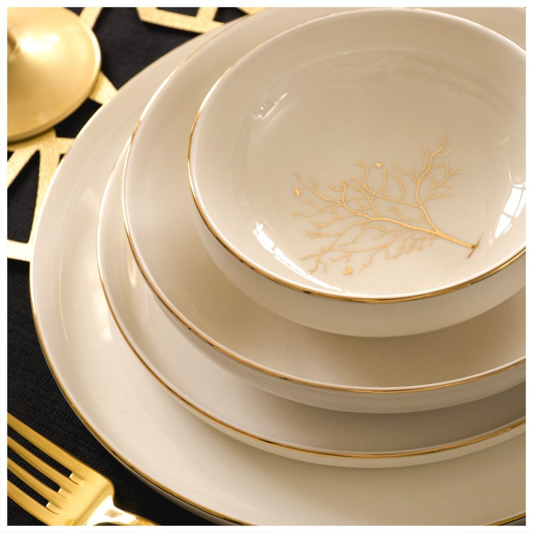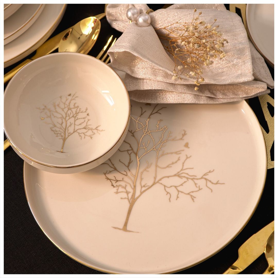 Doğanın zarafetini sofralarınıza taşıyan Tree of Life yemek takımı, sade ve şık tasarımıyla her sofranın vazgeçilmezi olacak. Takımdaki ağaç motifi, hayatın kök salan gücünü ve yaprakların canlandırıcı etkisini yansıtırken, porselenin inceliği ile birleşerek zarif bir uyum sunuyor. Her bir detayda saklı anlamlarla, yemeklerinize doğal bir dokunuş katmaya hazır bu özel tasarım, sizlere estetik bir şölen sunuyor.