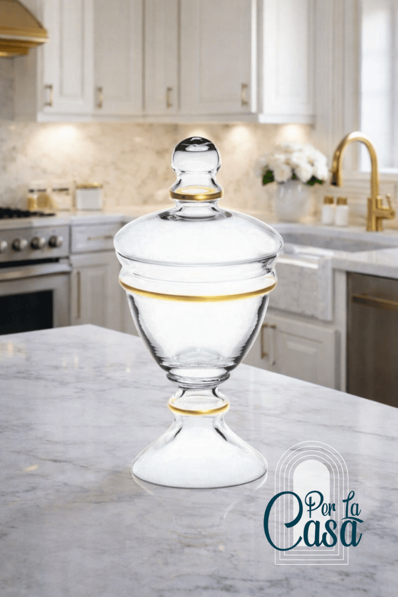 Vera Cam Kapaklı Ayaklı Şekerlik, camın şeffaf zarafetini altın yaldız detaylarla buluşturarak sunumlara sofistike bir dokunuş katar. Vera Cam Kapaklı Ayaklı Şekerlik Ayaklı formu ve kapaklı tasarımı sayesinde hem estetik hem de fonksiyonel bir kullanım sunar.